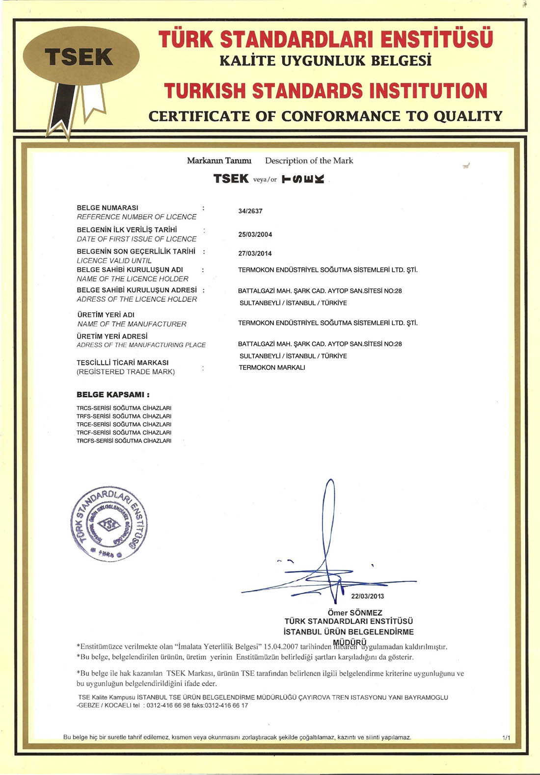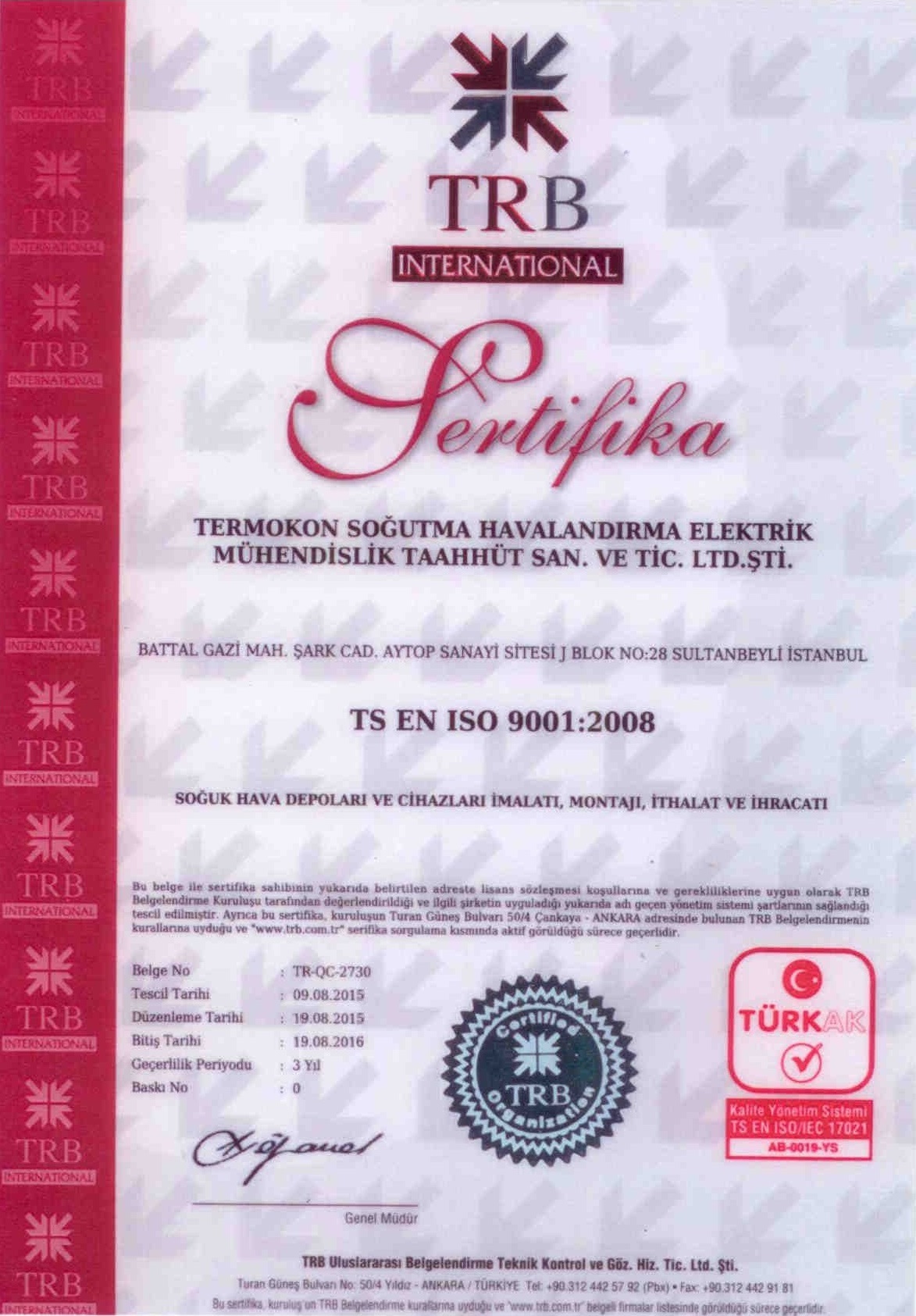 TERMOKON ، التي تم توثيق جودتها في عيون عملائها مع جميع الخدمات التي تقدمها في تركيا والخارج ، وقد توجت هذا النجاح مع شهادات الجودة المقبولة دوليا.