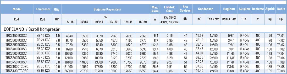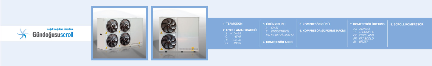 Gündoğusu serisi cihazlar soğuk odalarda kullanılmak için uygun cihazlardır. Gündoğusu serisi cihazların çalışma aralığı -5/+5 C'dir. Gündoğususcroll cihazların kapasiteleri 4.040 watt ile 26.300 watt arasında değişmektedir. SİSTEM AVANTAJLARI • KULLANIM ALANLARINA VE STANDARTLARINA BAĞLI ÖZEL MODEL SEÇENEKLERİ • DIŞ ORTAMIN OLUMSUZ KOŞULLARINA DAYANIKLI KASA YAPISI • İHTİYACA BAĞLI ÜRÜN ÇEŞİTLİLİĞİ • YÜKSEK VERİM • DÜŞÜK SES SEVİYESİ • EKİPMAN KALİTESİ • ZEMİN YA DA DUVARA YERLEŞİM SEÇENEKLERİ • KURULUM BAKIM KOLAYLIĞI TEKNİK ÖZELLİKLER • TRİFAZE KOMPRESÖRLERDE KONTAKTÖR • 6 KUTUPLU FAN • ELEKTROSTATİK TOZ BOYALI ÇELİK GALVANİZ KABİN • BAKIR BORU ALÜMİNYUM LAMELLİ KONDENSER • KURUTUCU FİLTRE • RUTUBET KONTROLLÜ GAZ GÖSTERGESİ • TERMİK MANYETİK ŞALTER • ON-OFF ELEKTRONİK FAN KONTROL • KARTER ISITICISI • ALÇAK-YÜKSEK BASINÇ PRESOSTADI • LİKİT AKIŞ KONTROL SELENOİDİ • ALÇAK-YÜKSEK GERİLİM KORUMA RÖLESİ • SOĞUTUCU AKIŞKAN DEPOSU TEKNİK OPSİYONLAR • AKUSTİK SES İZOLASYONU • ELEKTRONİK FAN DEVİR KONTROLÜ